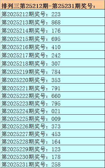 1.排列三最近十期分别开出号码:660-795-021-009-373-453-164-123-178-258,其中有6期奖号开出了上期的重复号码,本期预计第2025231期奖号:258中有重号,参考号码:8。